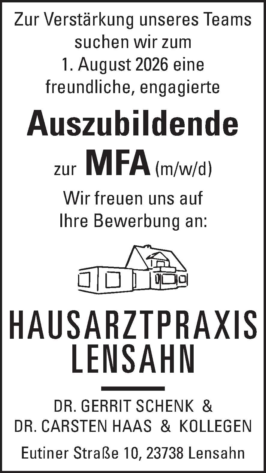 Auszubildende zur MFA in Lensahn Hausarztpraxis Lensahn Praxis Dr. Schenk & Dr. Haas Anzeige vom 31.01.2026