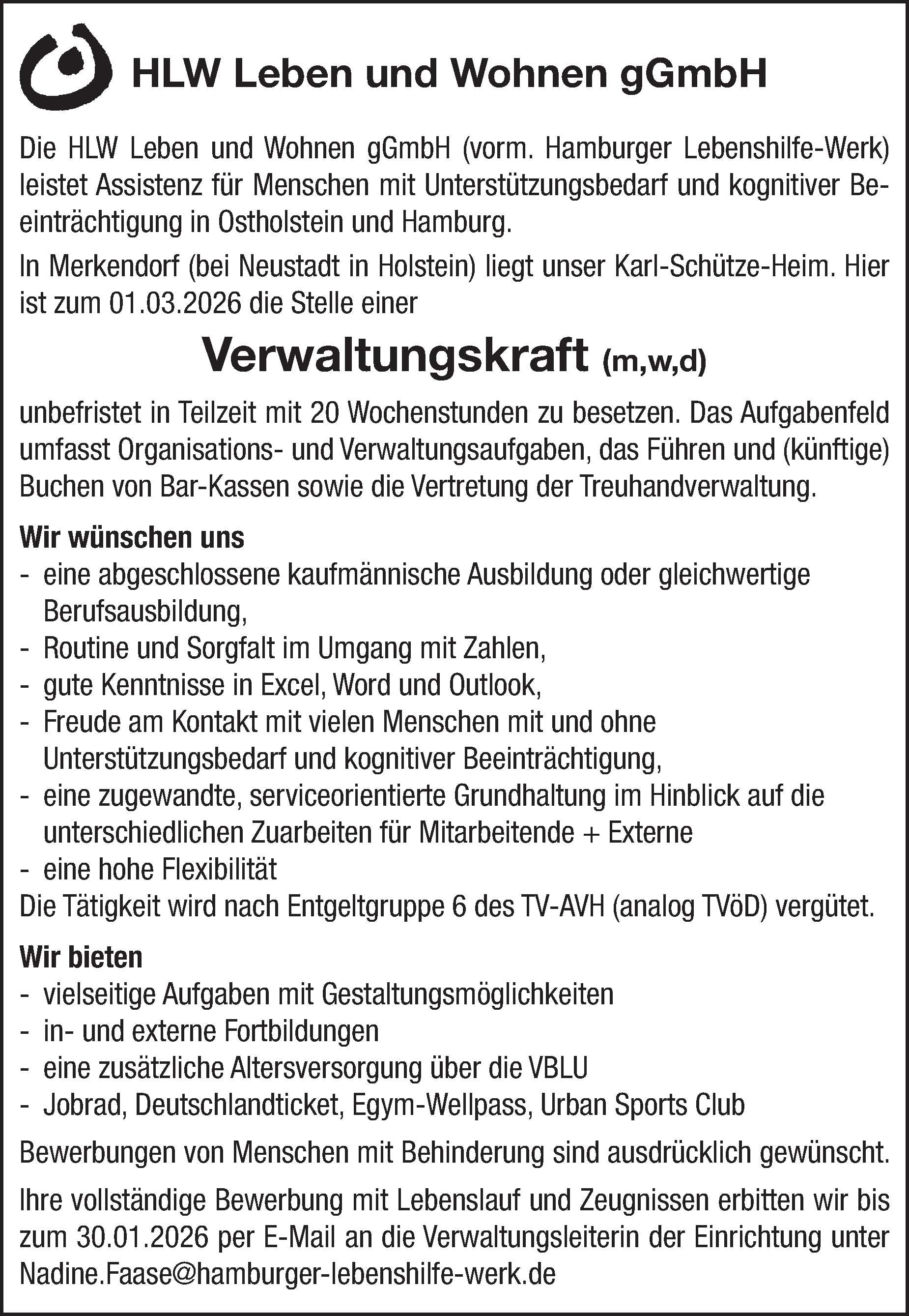Friedhofsmitarbeiter*in (m/w/d) i.d. kirchlichen Friedhöfen Das Ev.-Luth. Kirchenkreis Ostholstein Anzeige vom 31.01.2026