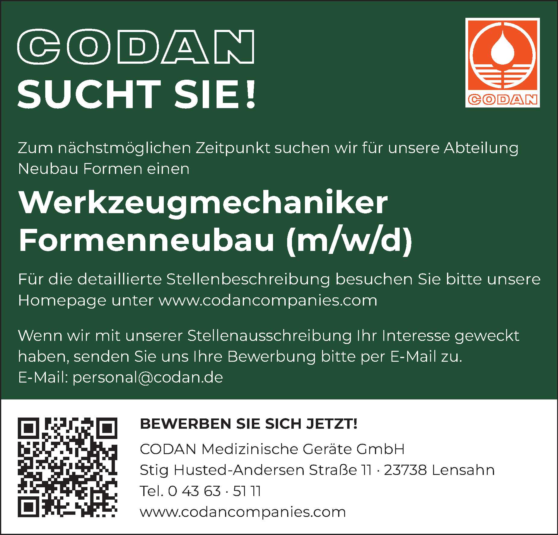 Werkzeugmechaniker Formenneubau m/w/d in Lensahn Codan Medizinische Geräte GmbH Anzeige vom 24.01.2026