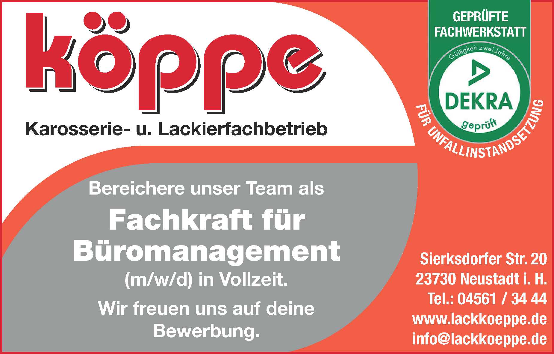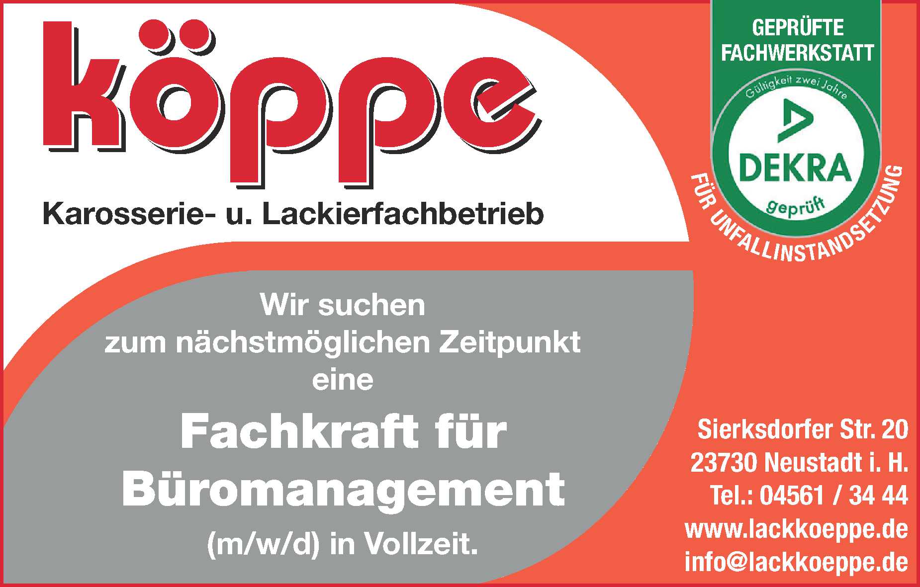 Fachkraft für Büromanagement (m/w/d) in Neustadt i.H. Köppe Karosserie- und Lackierfachbetrieb Anzeige vom 28.01.2026