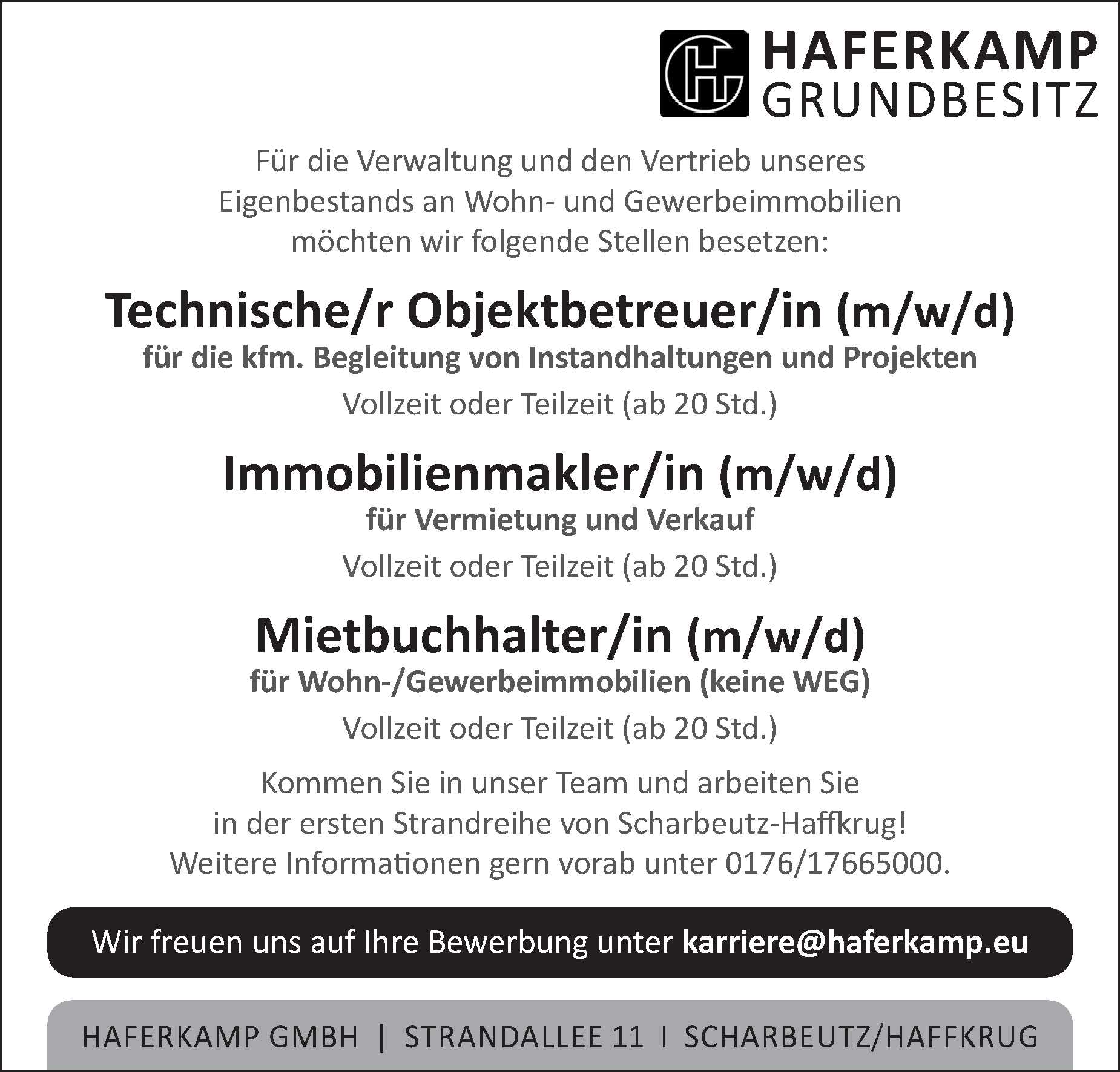 Technische/r Objektbetreuer/in (m/w/d); Immobilienmakler/in (m/w/d) in Scharbeutz Haferkamp GmbH Anzeige vom 04.02.2026