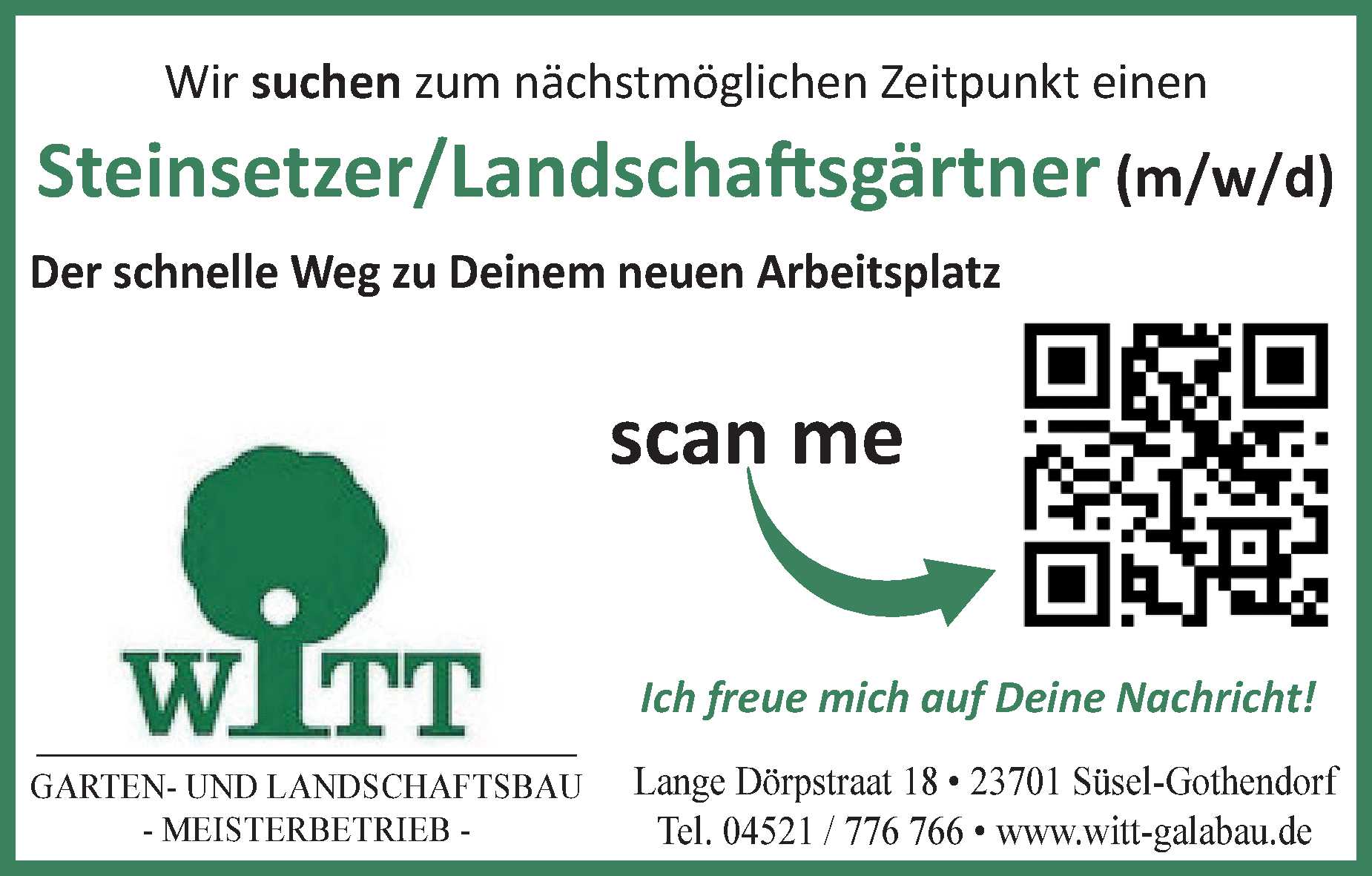 Steinsetzer/Landschaftsgärtner (m/w/d) in Süsel-Gothendorf Witt Garten- und Landschaftsbau Anzeige vom 31.01.2026