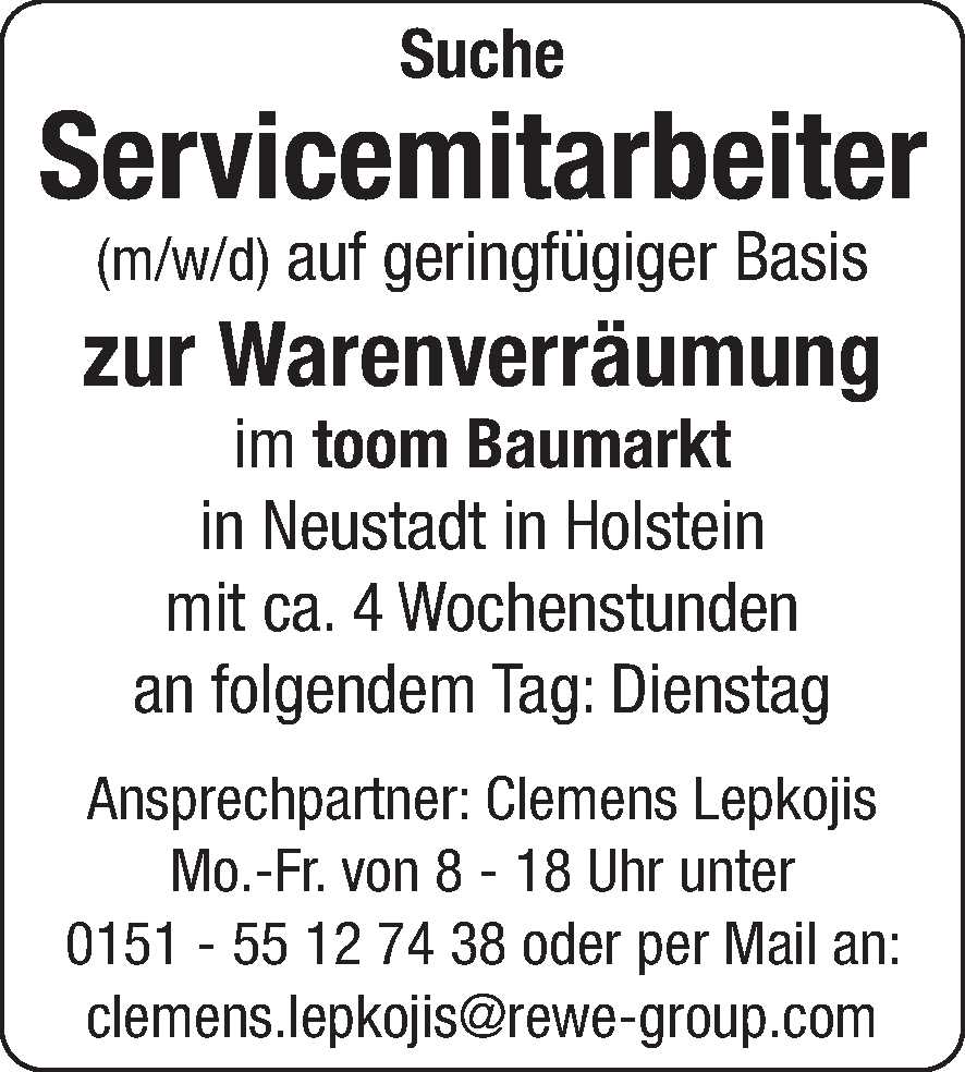 Servicemitarbeiter m/w/d auf geringfügiger Basis in Neustadt/Holstein Toom Baumarkt Anzeige vom 04.04.2026