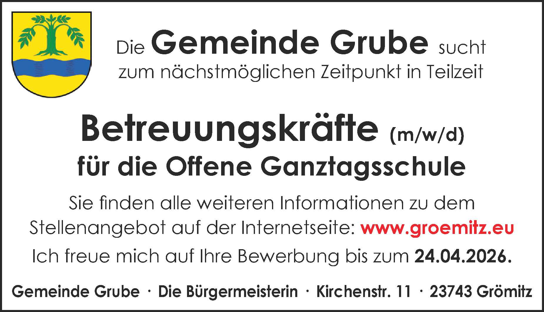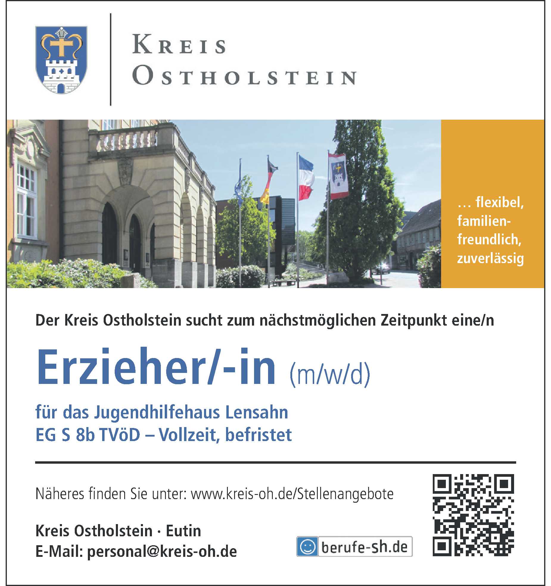 Sozialpädagogin/-en (m/w/d), Schulhausmeister/in (m/w/d), Mitarbeiter/in (m/w/d) Kreis Ostholstein Anzeige vom 28.03.2026
