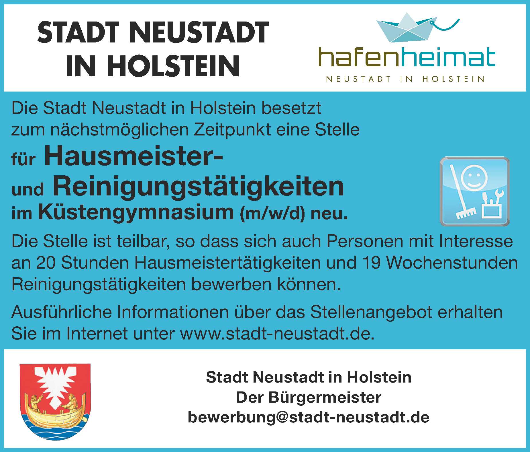 Hausmeister- und Reinigungstätigkeiten im Küstengymnasium (m/w/d) Stadt Neustadt in Holstein Anzeige vom 08.04.2026