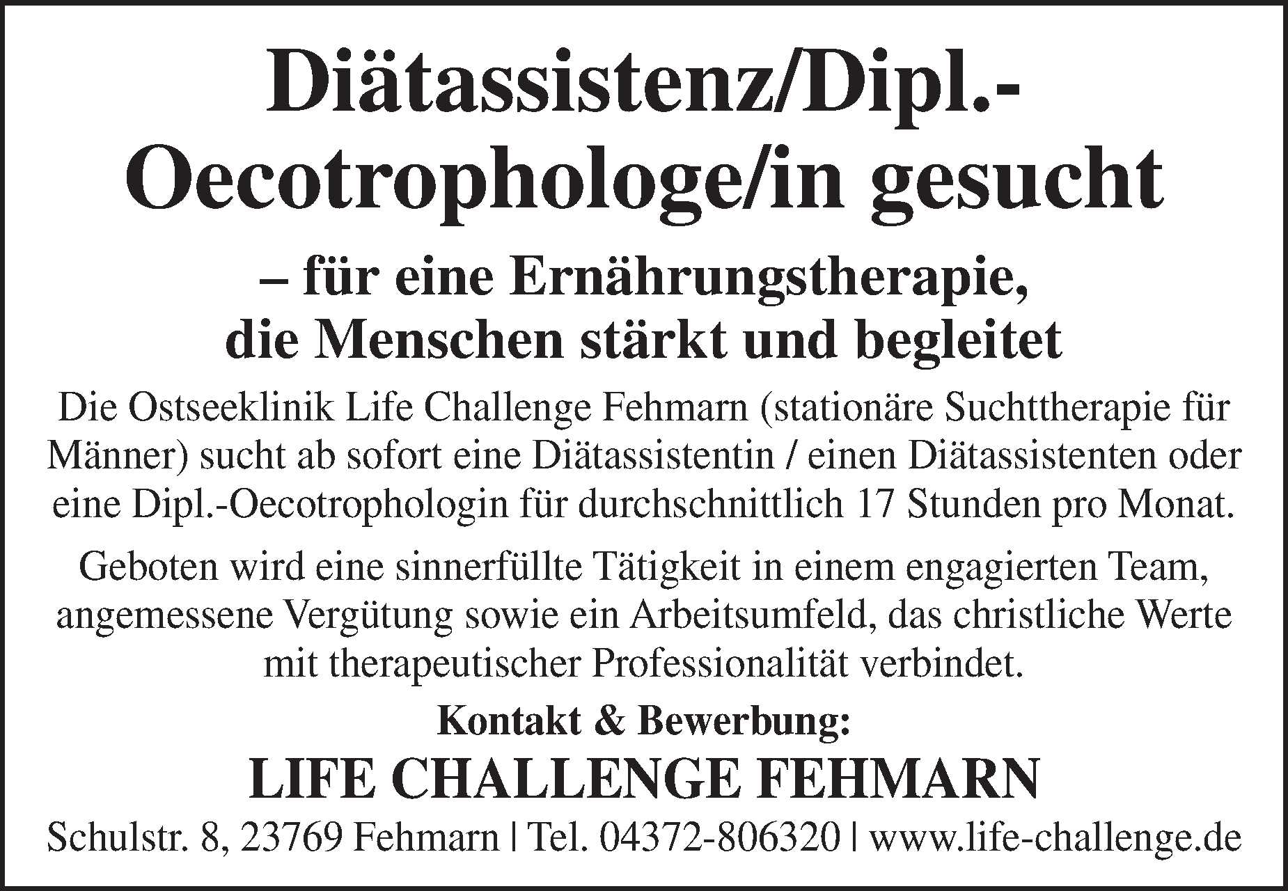Diätassistenz/Dipl.-Oecotrophologe/in gesucht in Fehmarn Life Challenge Fehmarn Anzeige vom 01.04.2026