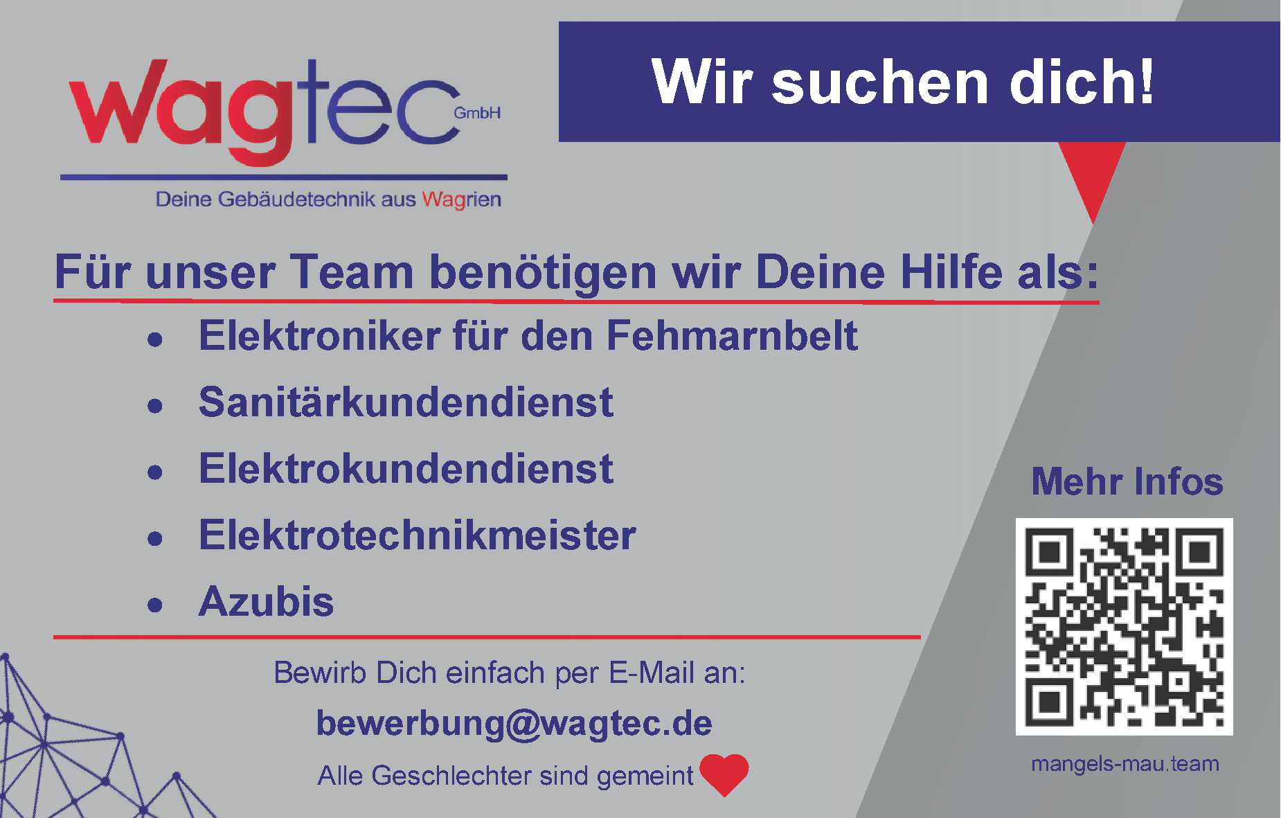 Elektroniker, Sanitärkundendienst, Elektrokundendienst, Elektrotechnikermeister, Azubis, m/w/d Wagtec GmbH Anzeige vom 01.04.2026