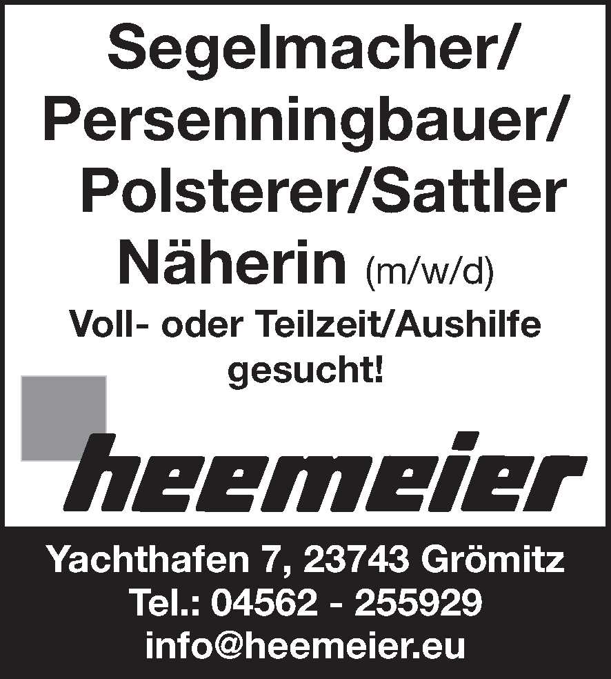 Segelmacher/Persenningbauer/Polsterer/Sattler/Näherin (m/w/d) in Grömitz heemeier Anzeige vom 04.04.2026