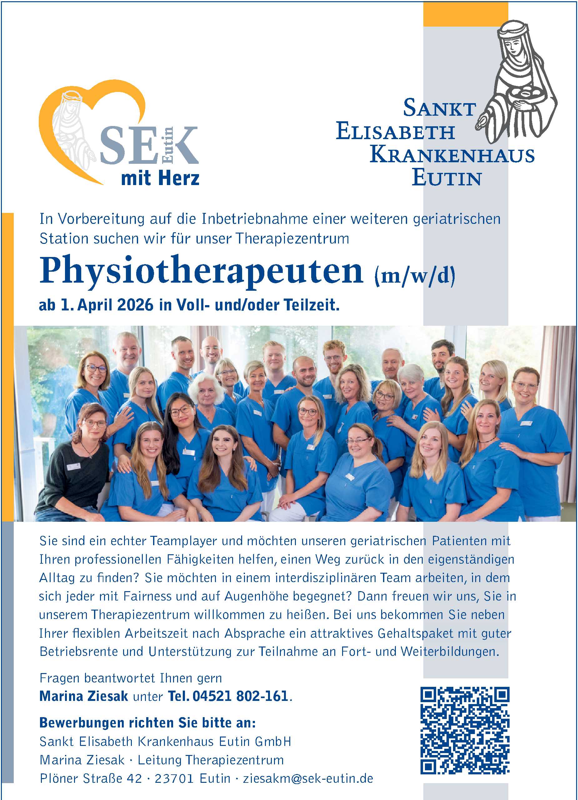 Pflegefach- und Pflegehilfskräfte und stellv. Stationsleitung(m,w,d) in Eutin Sankt Elisabeth Krankenhaus Eutin GmbH Anzeige vom 13.03.2026