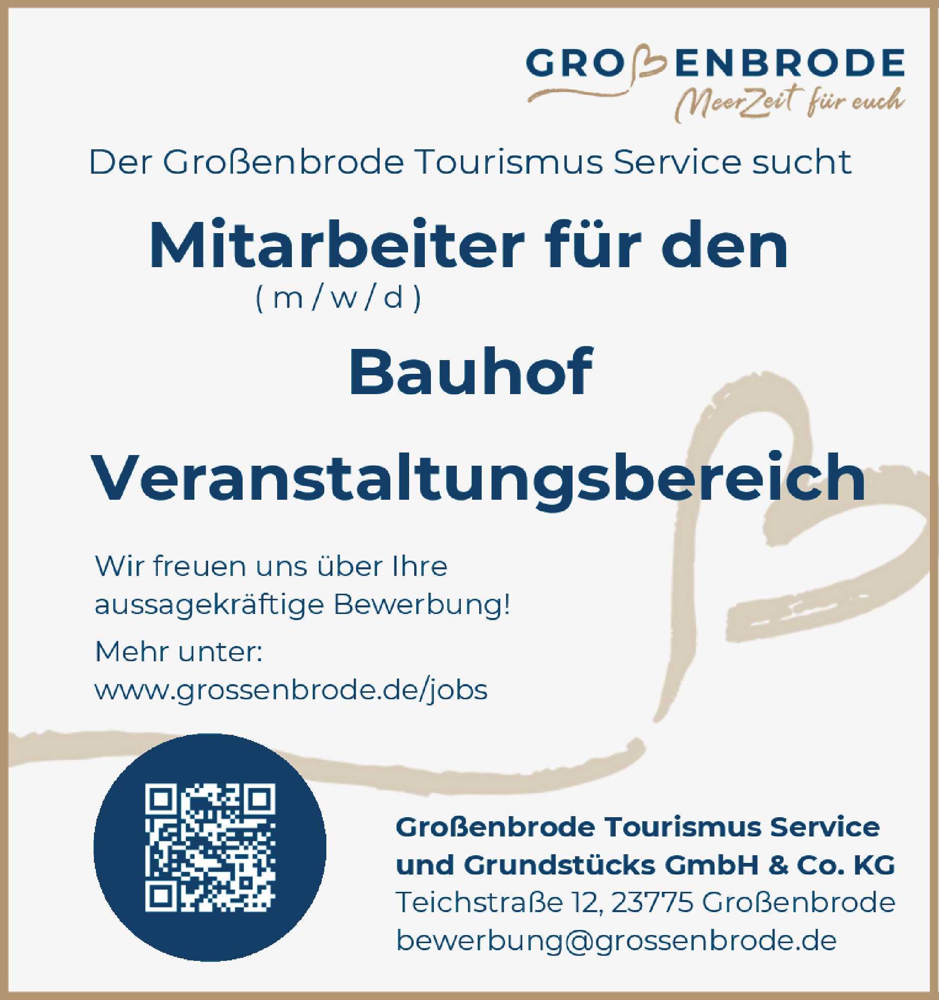 Mitarbeiter für den Bauhof Veranstaltungsberecih (m/w/d) in Großenbrode Großenbrode Tourismus Service und Grundstücks GmbH & Co.KG Anzeige vom 13.03.2026