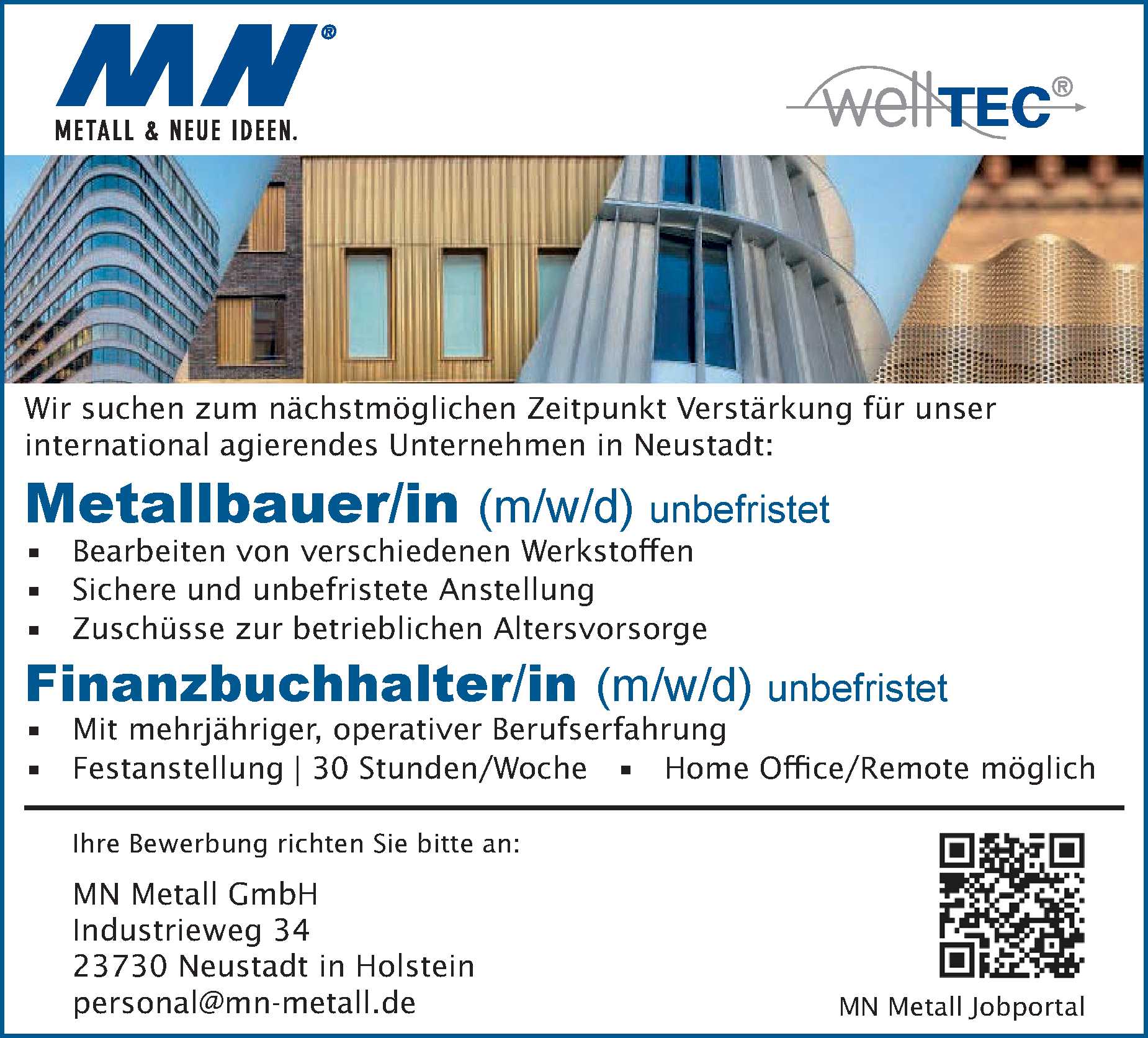 Finanzbuchhalter/in (m/w/d) & Metallbauer (m/w/d) in Neustadt in Holstein MN Metall GmbH Anzeige vom 13.03.2026