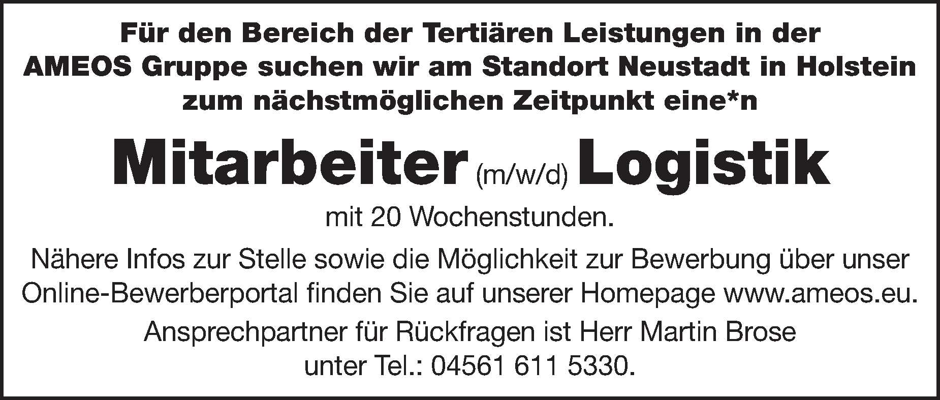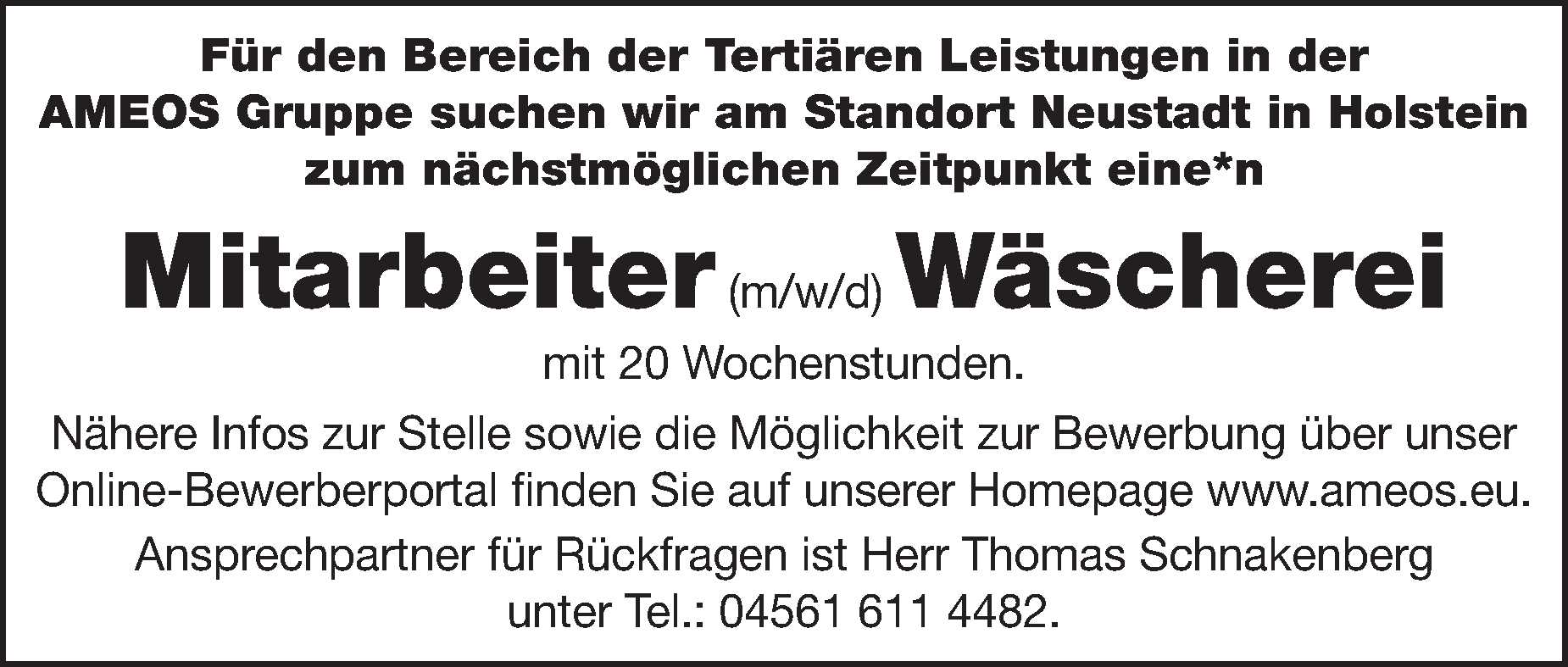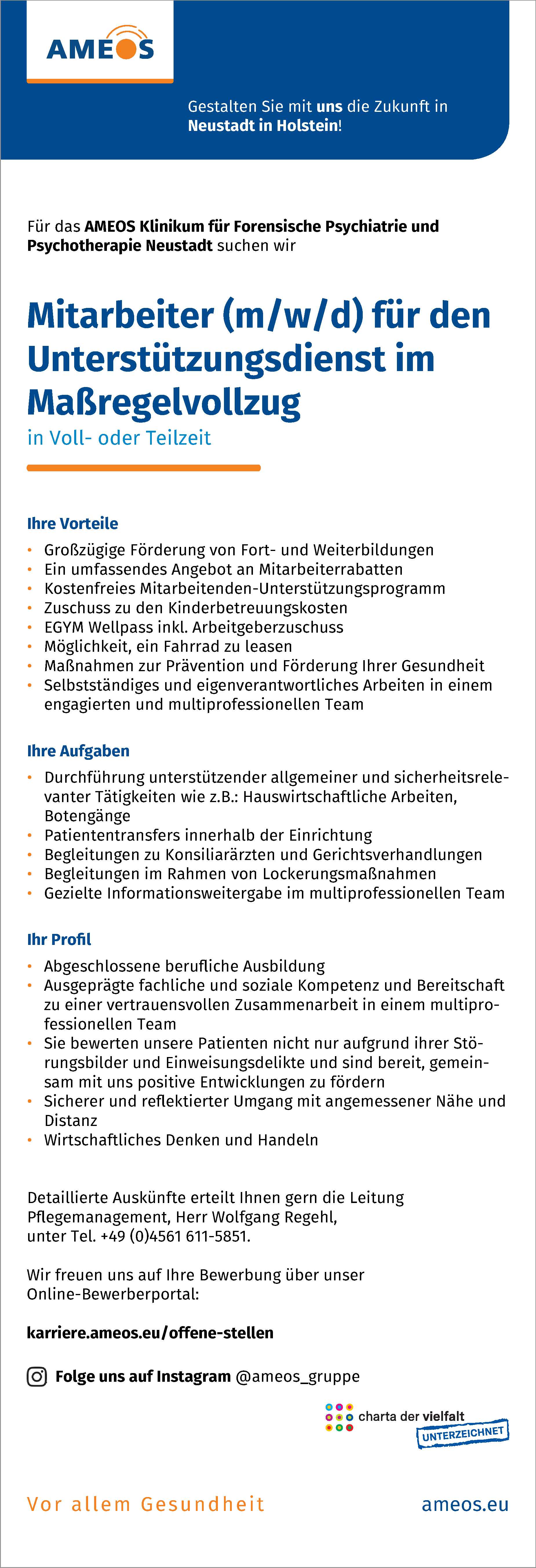Mitarbeiter (m/w/d) für den Unterstützungsdienst im Maßregelvollzug AMEOS Klinikum für Forensische Psychiatrie und Psychotherapie Neustadt Anzeige vom 07.03.2026