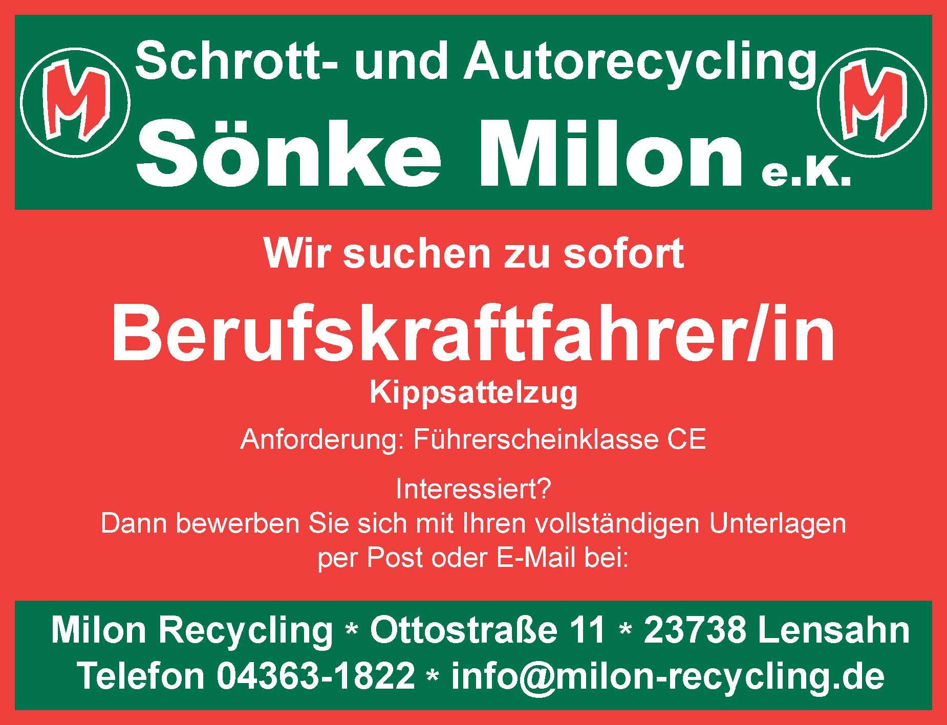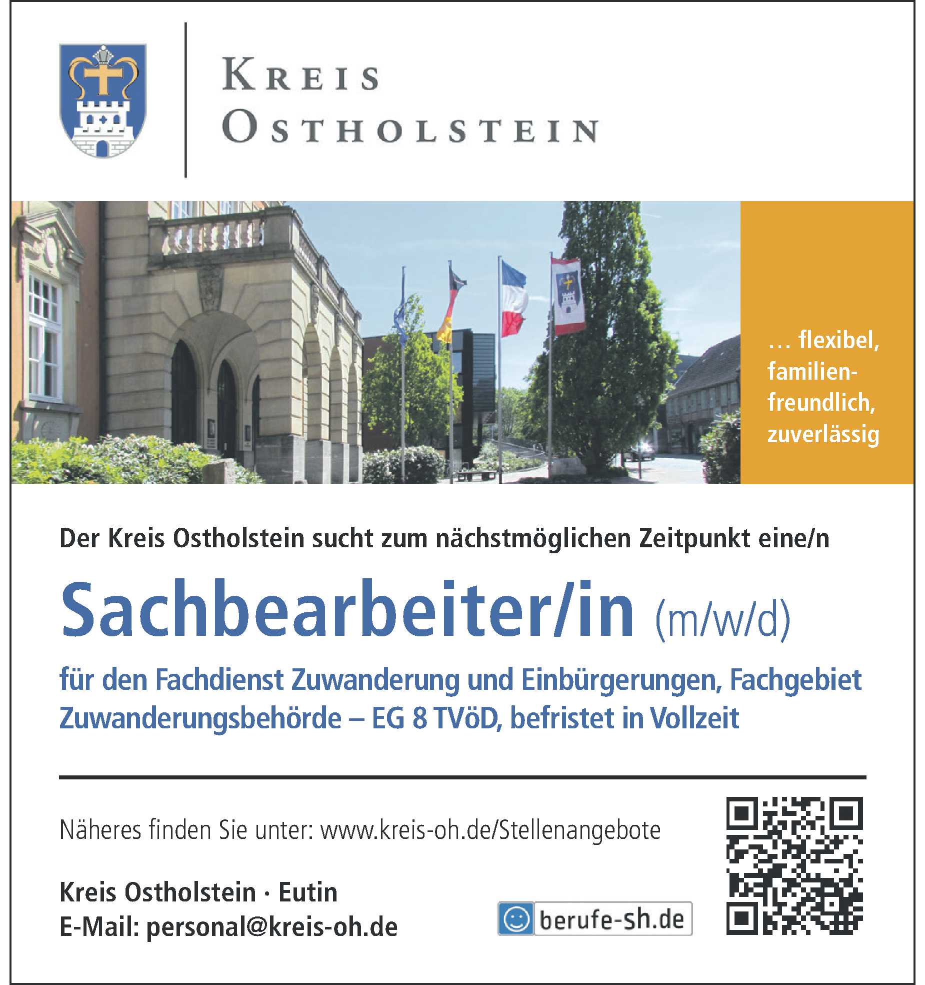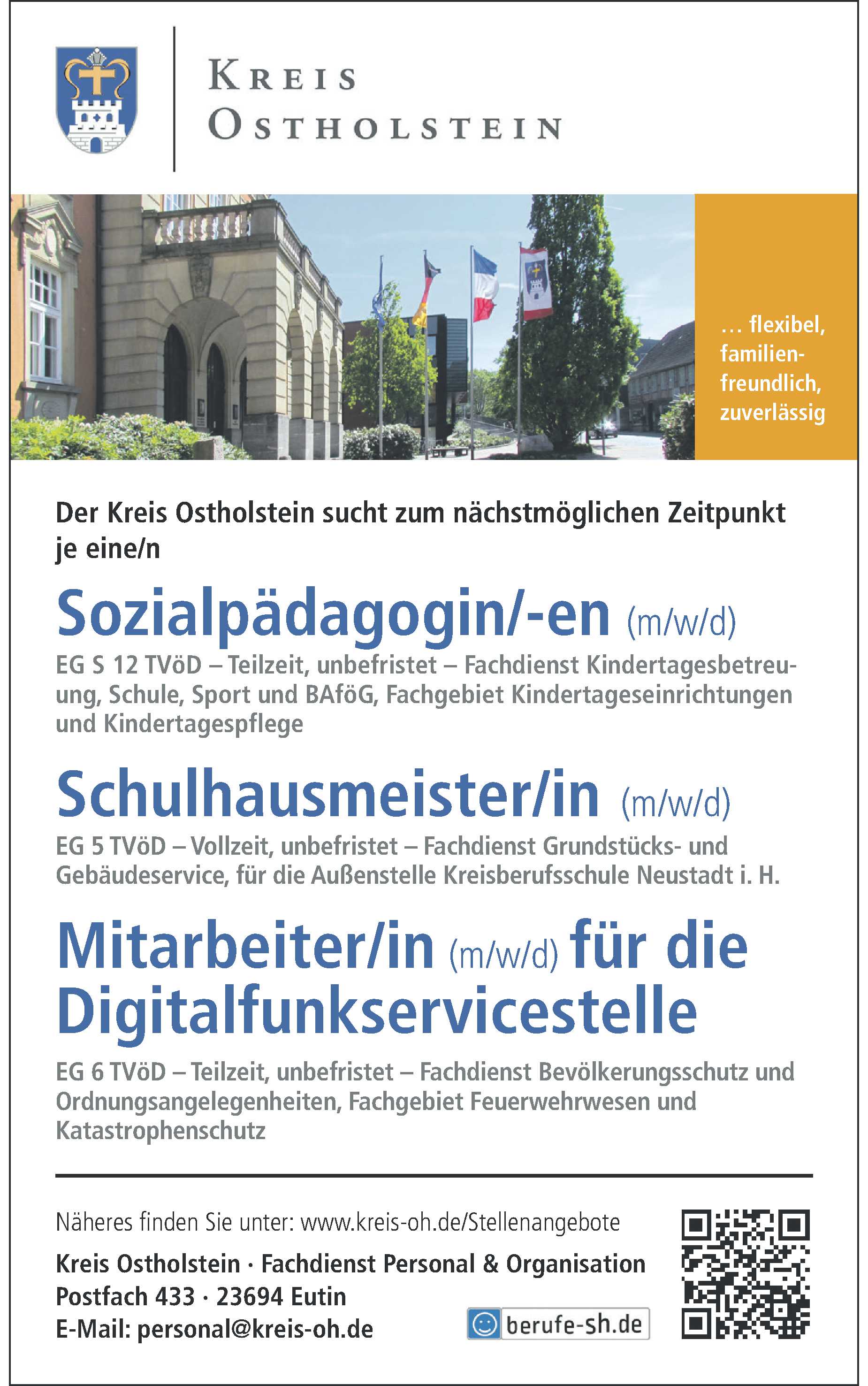 Sozialpädagogin/-en (m/w/d), Schulhausmeister/in (m/w/d), Mitarbeiter/in (m/w/d) Kreis Ostholstein Anzeige vom 13.03.2026