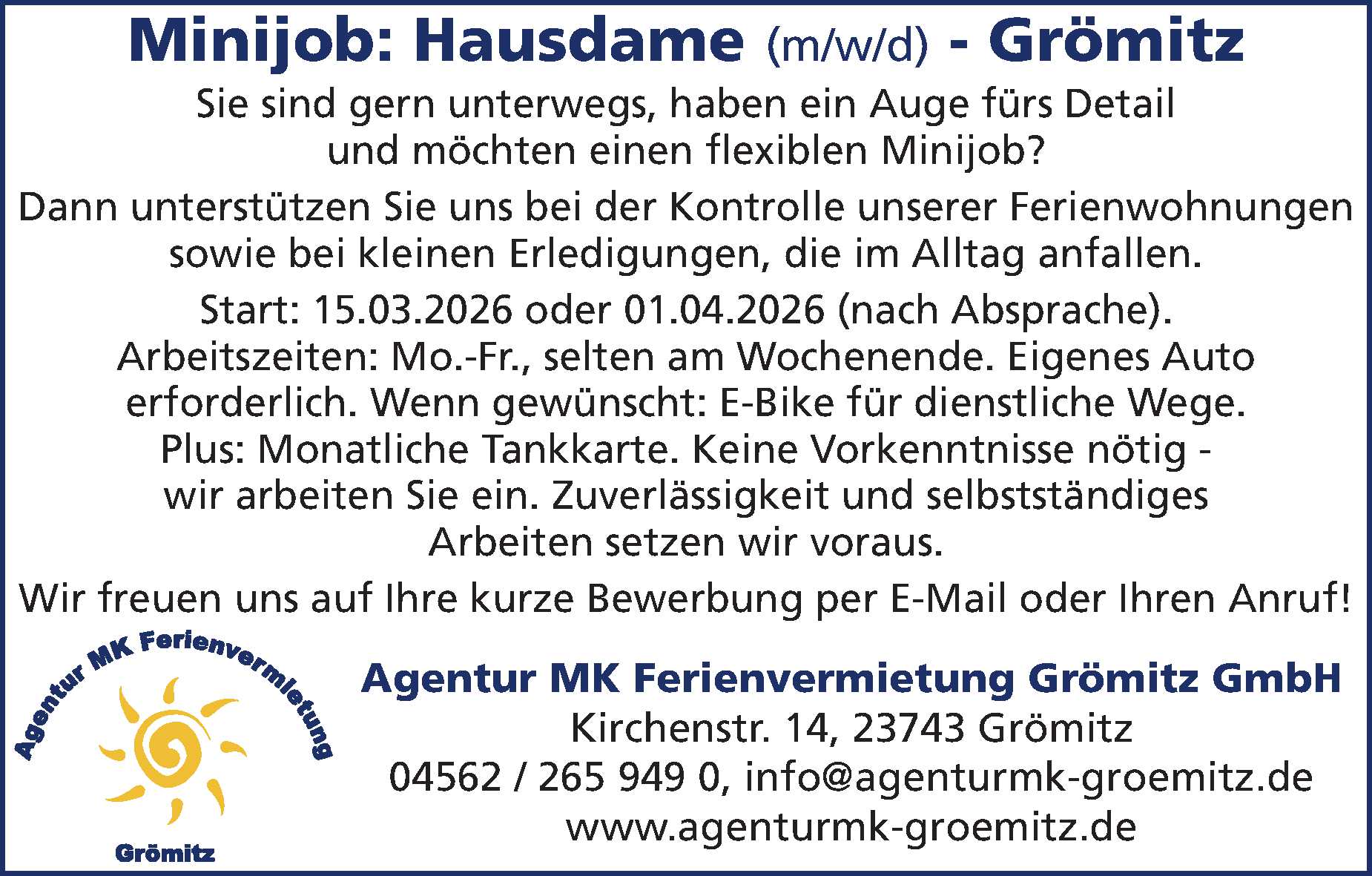 Ausbildung als Kauffrau/Kaufmann für Tourismus und Freizeit Tourismus-Service Ostseebad Kellenhusen Anzeige vom 13.03.2026