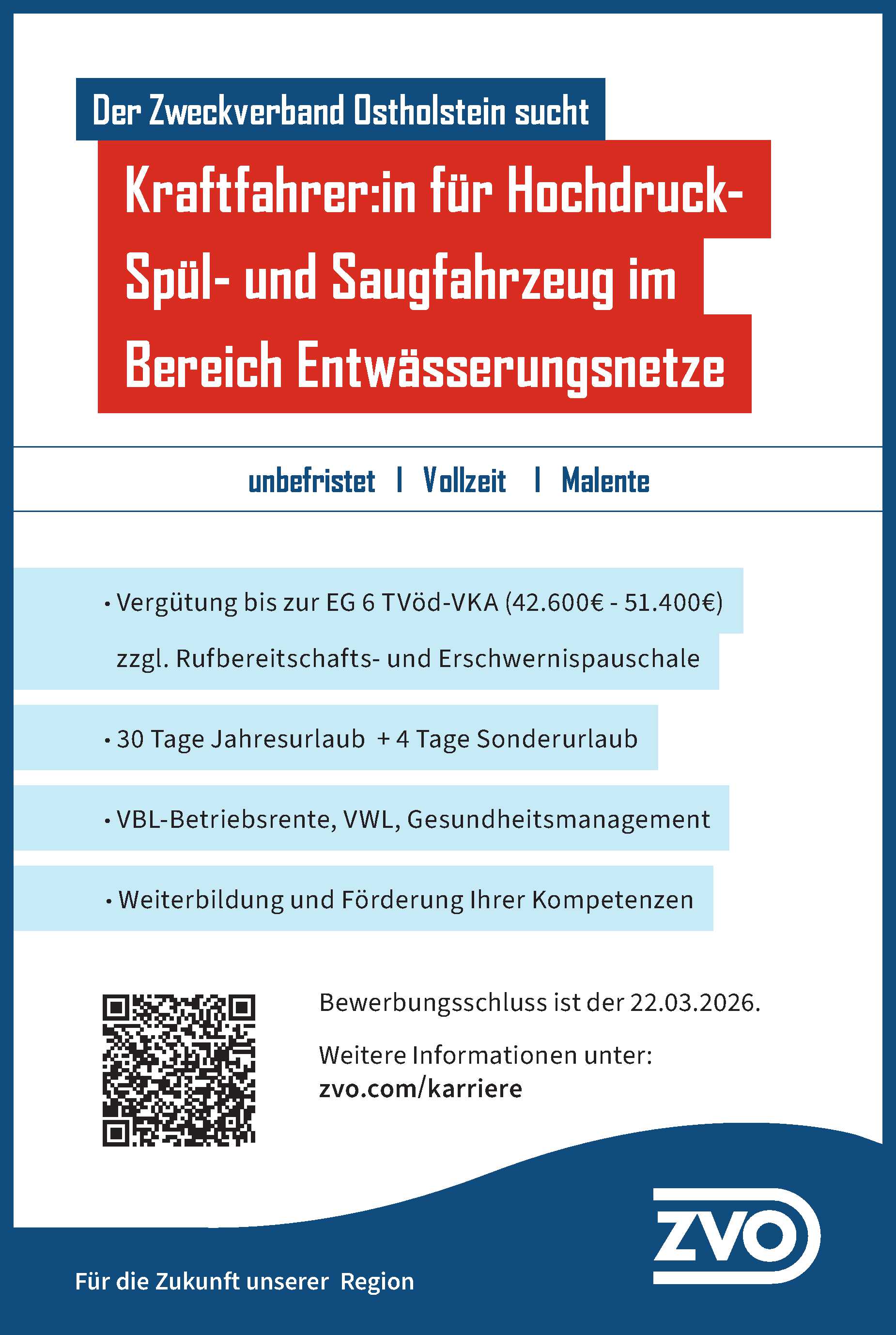 Kraftfahrer:in für Hochdruck-Spül- und Saugfahrzeug im Bereich Entwässerungsnetze Zweckverband Ostholstein Anzeige vom 13.03.2026