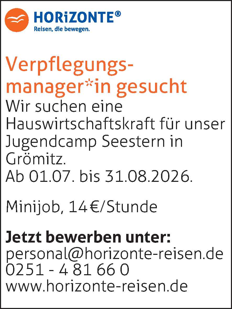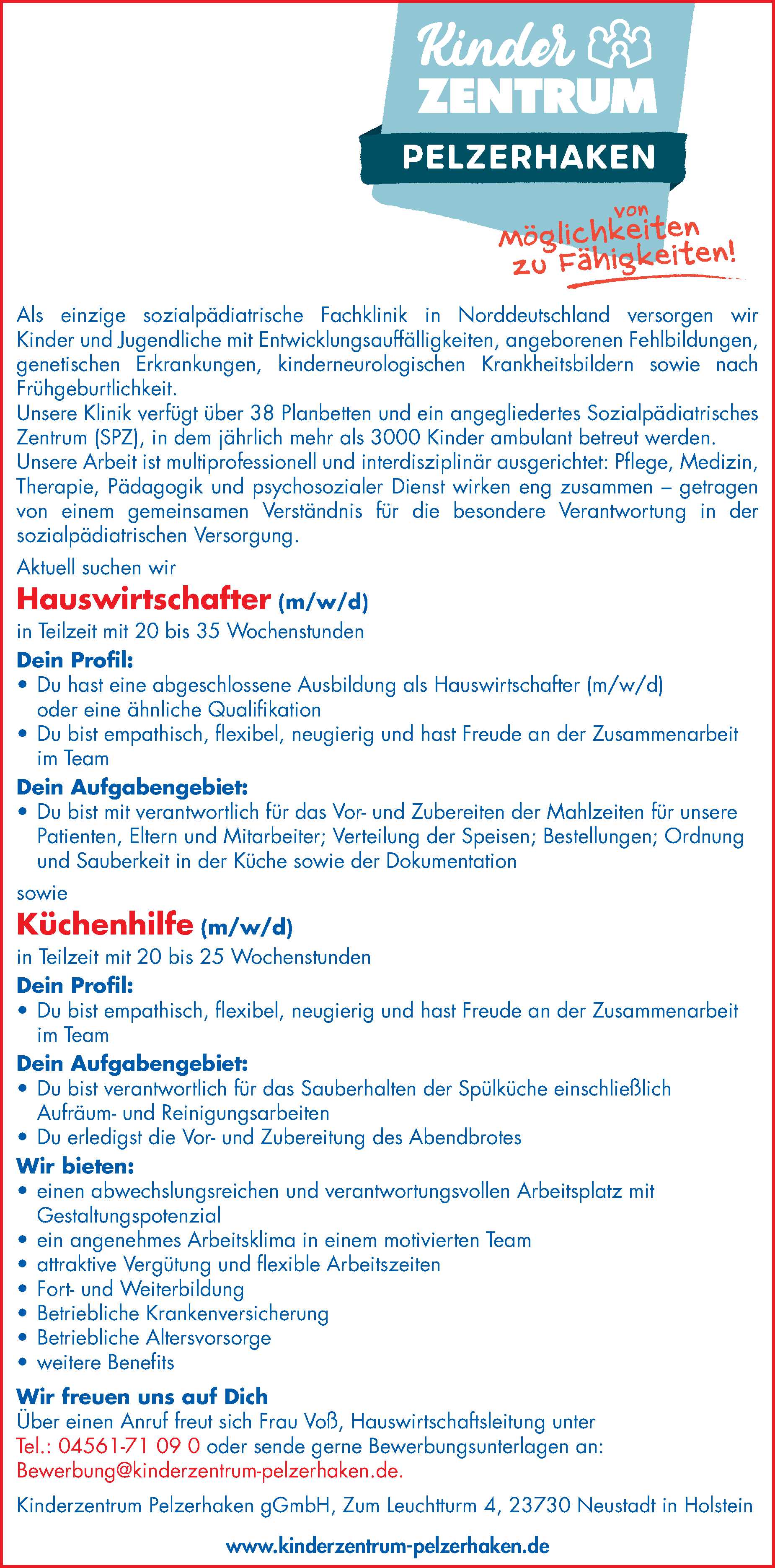 Hauswirtschafter (m/w/d); Küchenhilfe (m/w/d) in Pelzerhaken Kinderzentrum Pelzerhaken Anzeige vom 13.03.2026