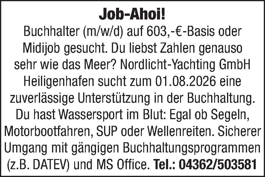 Sachbearbeiter/in für die Finanzbuchhaltung (m/w/d); Sachbearbeiter/in (m/w/d) Kreis Ostholstein Anzeige vom 13.03.2026